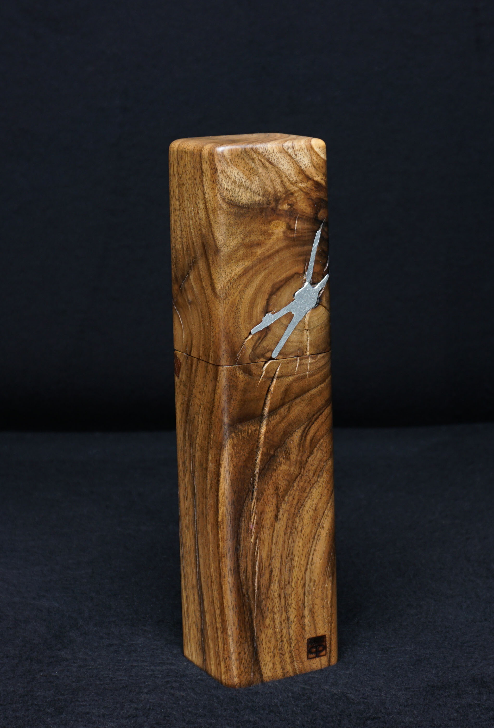 Urige Walnussmühle mit Reinzinn-Applikation