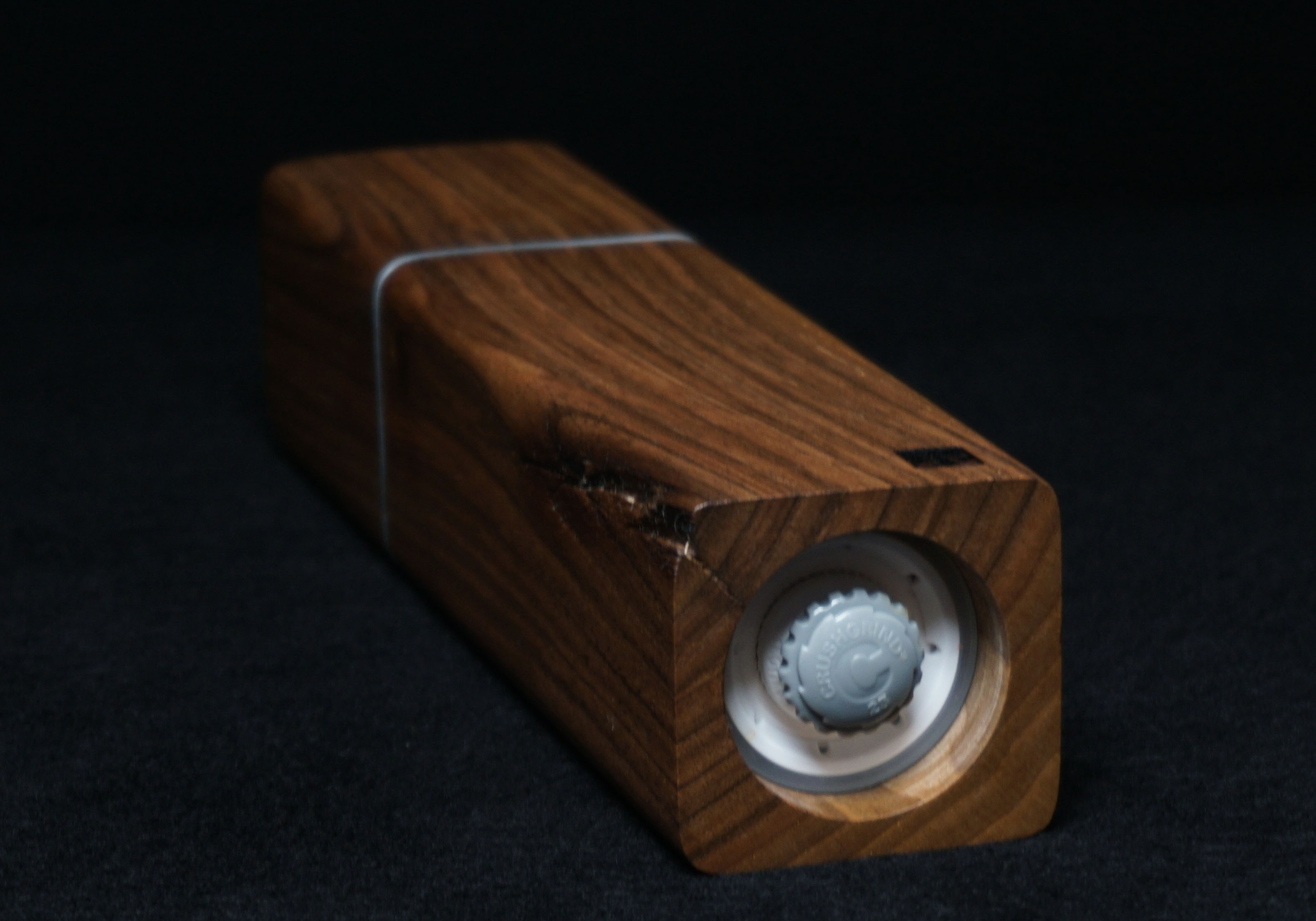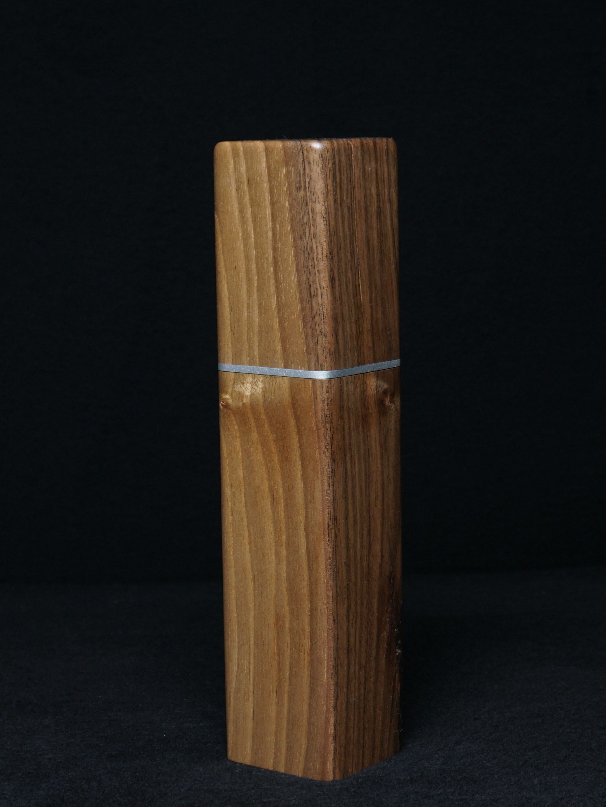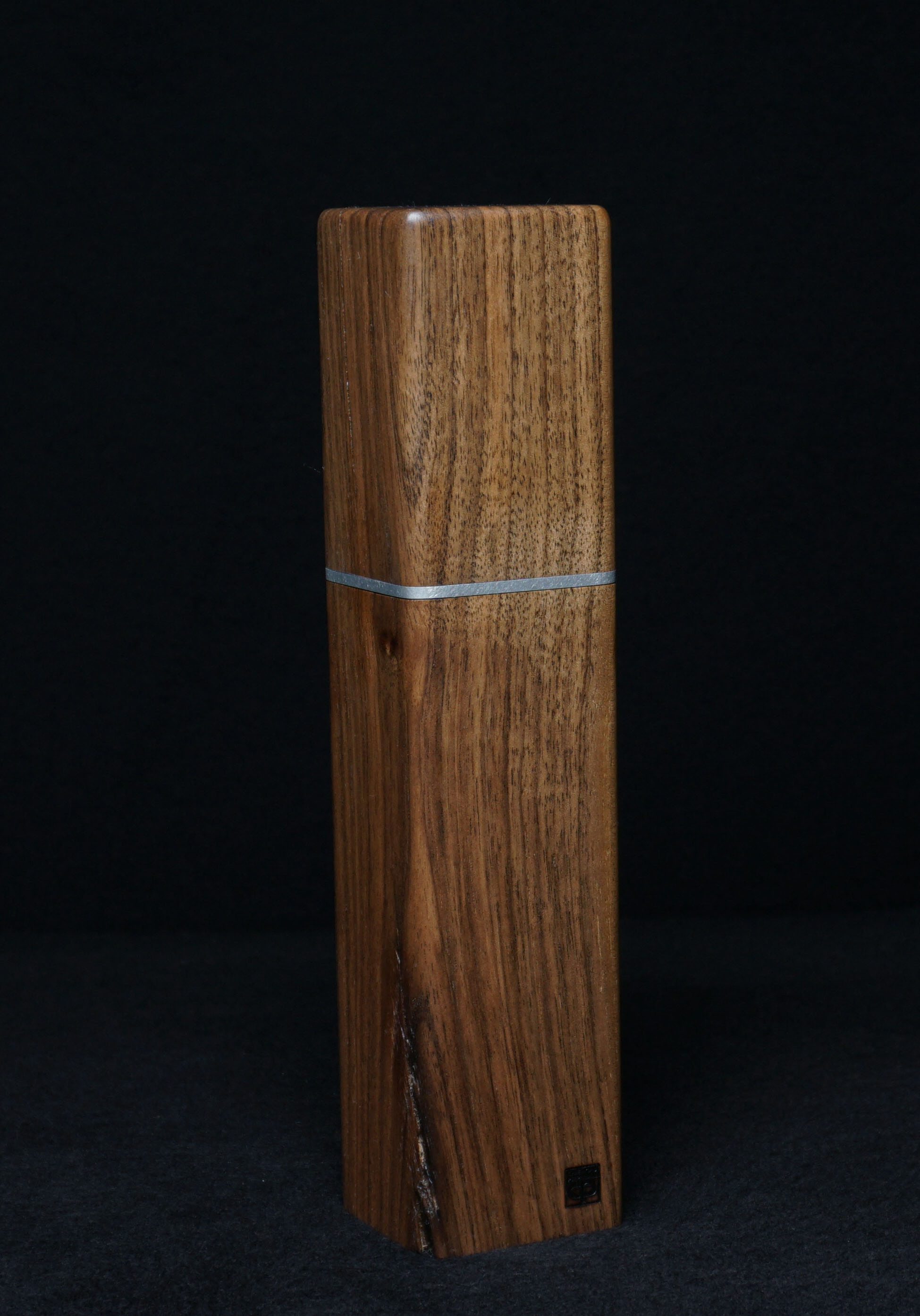 Dunkle Walnussmühle mit Aluminium-Applikation am Drehkopf